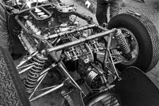 1958 begann der Siegeszug der Heckmotoren in der Formel 1. Schon in der Saison 1959 gingen der Konstrukteurs- als auch der Fahrertitel für Jack Brabham an den britischen Cooper-Rennstall, der von Anfang an auf Heckmotor-Rennwagen setzte, die Derivate seiner 1500 ccm-Sportwagen aus dem Jahre 1955 waren. In der Rennsaison 1959 hatte Enzo Ferrari die Erfahrung machen müssen, dass ein gutes Chassis genauso wichtig war wie Motorleistung. BRM. wagte die ersten Versuche mit einem Heckmotor 1959 im Training zum Grand Prix von Italien, und Lotus hatte seit Anfang 1960 den Typ 18 im Köcher. Nur in Maranello blieb man in den ersten Monaten des Jahres 1960 weiter beim traditionellen Frontmotorwagen und wagte den ersten Versuchsschritt mit einem im Heck eingebauten Motor erst im Mai. In dieser Saison wurden die frontmotorisierten Ferrari Dino auf den europäischen Strecken von den modernen, leichtgewichtigen britischen heckmotorisierten Wagen wiederum geschlagen. Für Enzo Ferrari ging es nicht nur um ein Bauprinzip, sondern um eine Weltanschauung. Jahre lang hatte er Renn- und Sportwagen mit vorne eingebauten Motoren gebaut, die durchweg sehr erfolgreich waren und denen inzwischen ein legendärer Ruhm anhaftete. Daher tat er sich schwer, dieses Bauprinzip aufzugeben.