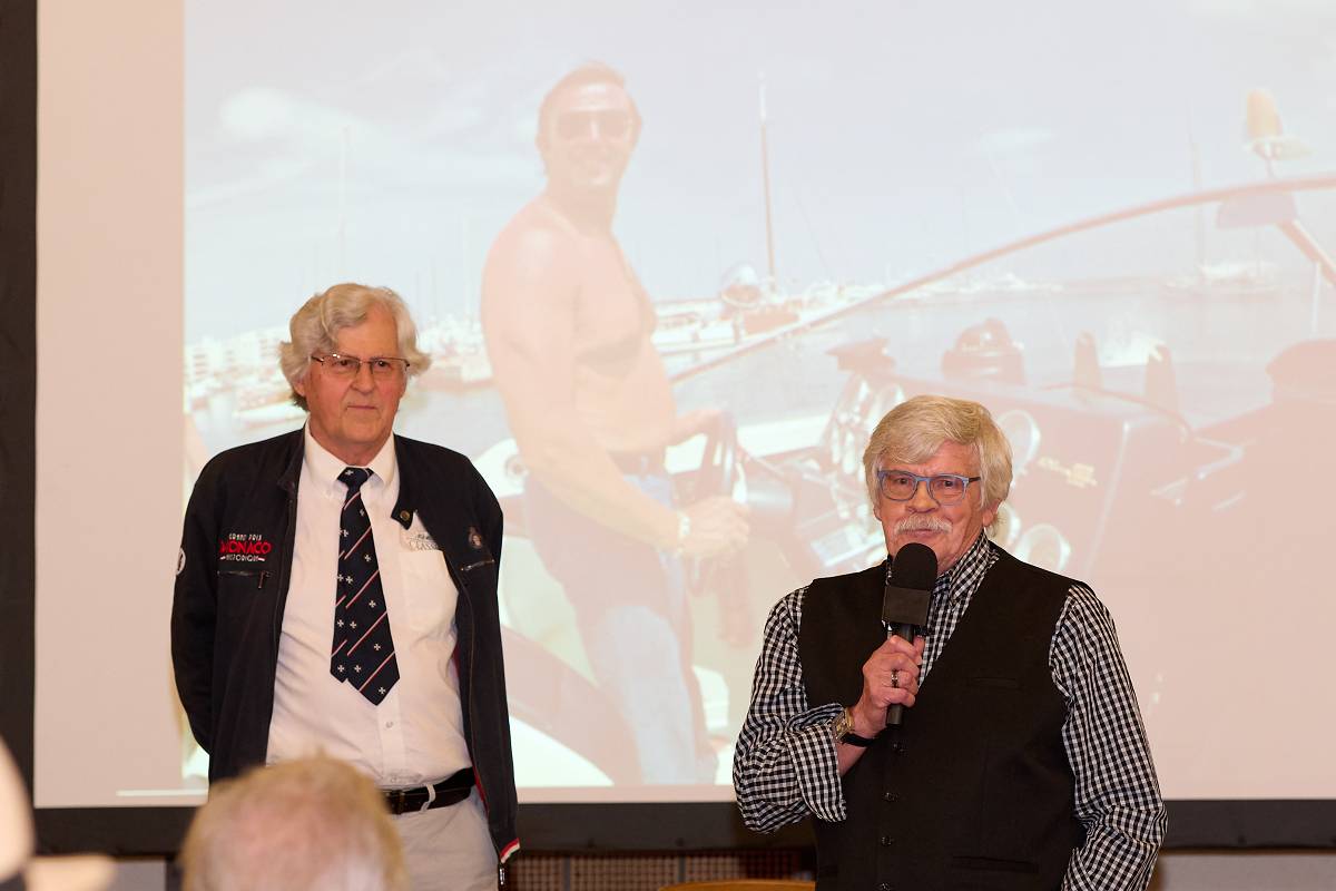Anhand großformatig präsentierter Fotomotive und einer Bilder-Show, die von Rainer Roßbach und Nils Ruwisch präsentiert wurde, ging von Osterroth auf einzelne, unvergessene Episoden seiner „Rennsportkarriere“ ein, die die Besucher in ihren Bann zogen.