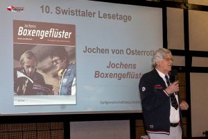 Im Rahmen der 10. Swisttaler Lesetage kamen Rennsportfans – wie in den Jahren zuvor – voll auf ihre Kosten: Jochen von Osterroth stellte sein Buch „Boxengeflüster“, von Jörg-Thomas Födisch in der prova edition herausgegeben, am 19. September im Straßfelder Dorfgemeinschaftshaus vor.